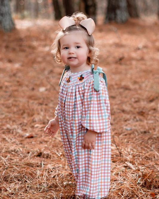GINGHAM TURKEY SMOCK GIRL ROMPER