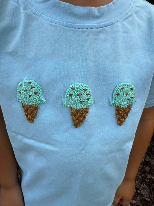 FRENCH KNOT ICE CREAM BOY SHORT SET
