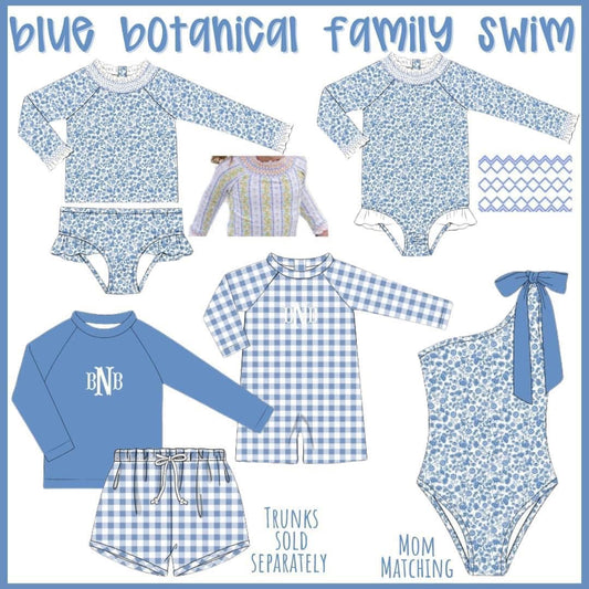 BLUE BOTANICAL FAMILY SWIM RASHGUARD SHIRT
