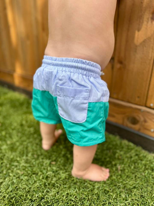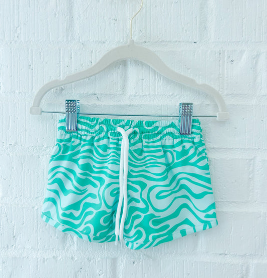 BOYS TOTALLY FUNKY TEAL SWIM TRUNKS