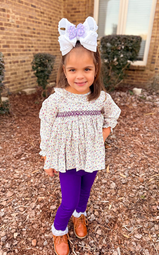 TINY LAVENDER FLORAL SMOCKED LEGGING SET