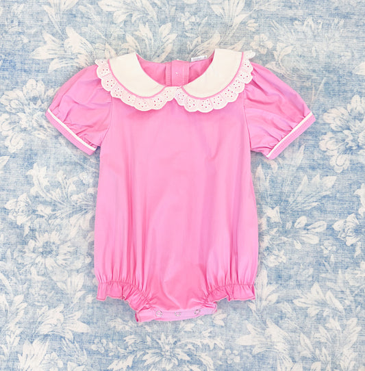 Sold outEYELET LACE PINK WOVEN GIRL BUBBLE