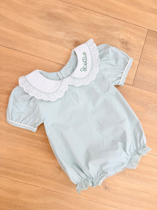 EYELET LACE PASTEL MINT WOVEN GIRL BUBBLE