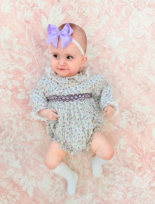 TINY LAVENDER FLORAL SMOCKED BUBBLE