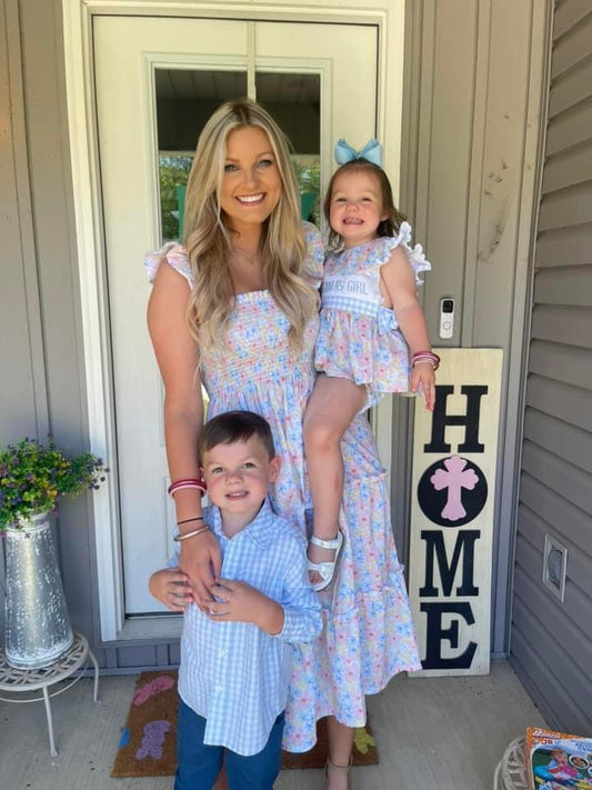 BOTANICAL GINGHAM MOM DRESS