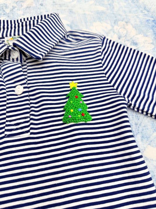 BOY CHRISTMAS TREE FRENCH KNOT POLO