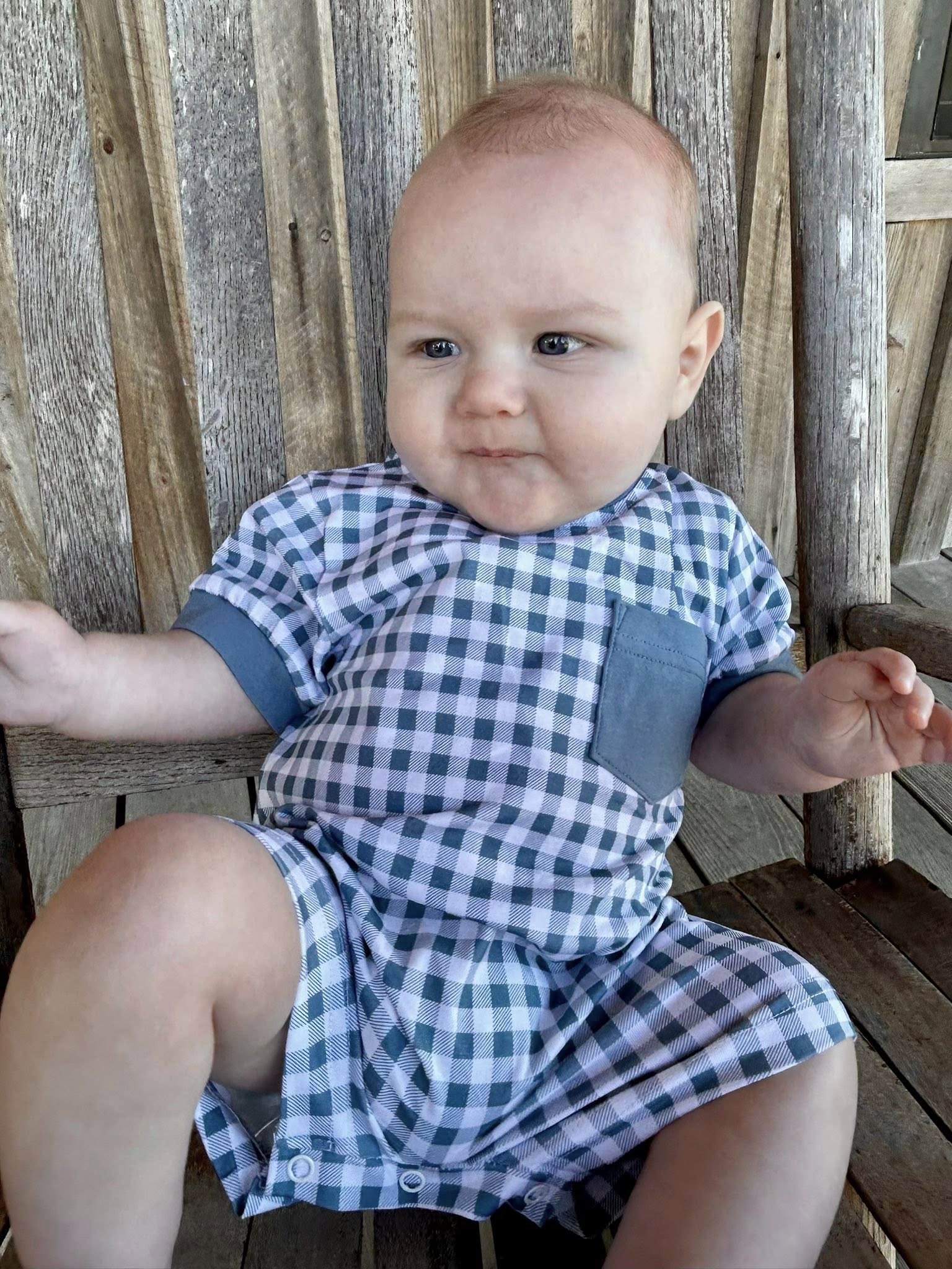 BLUE STONE FLORAL & GINGHAM BOY ROMPER