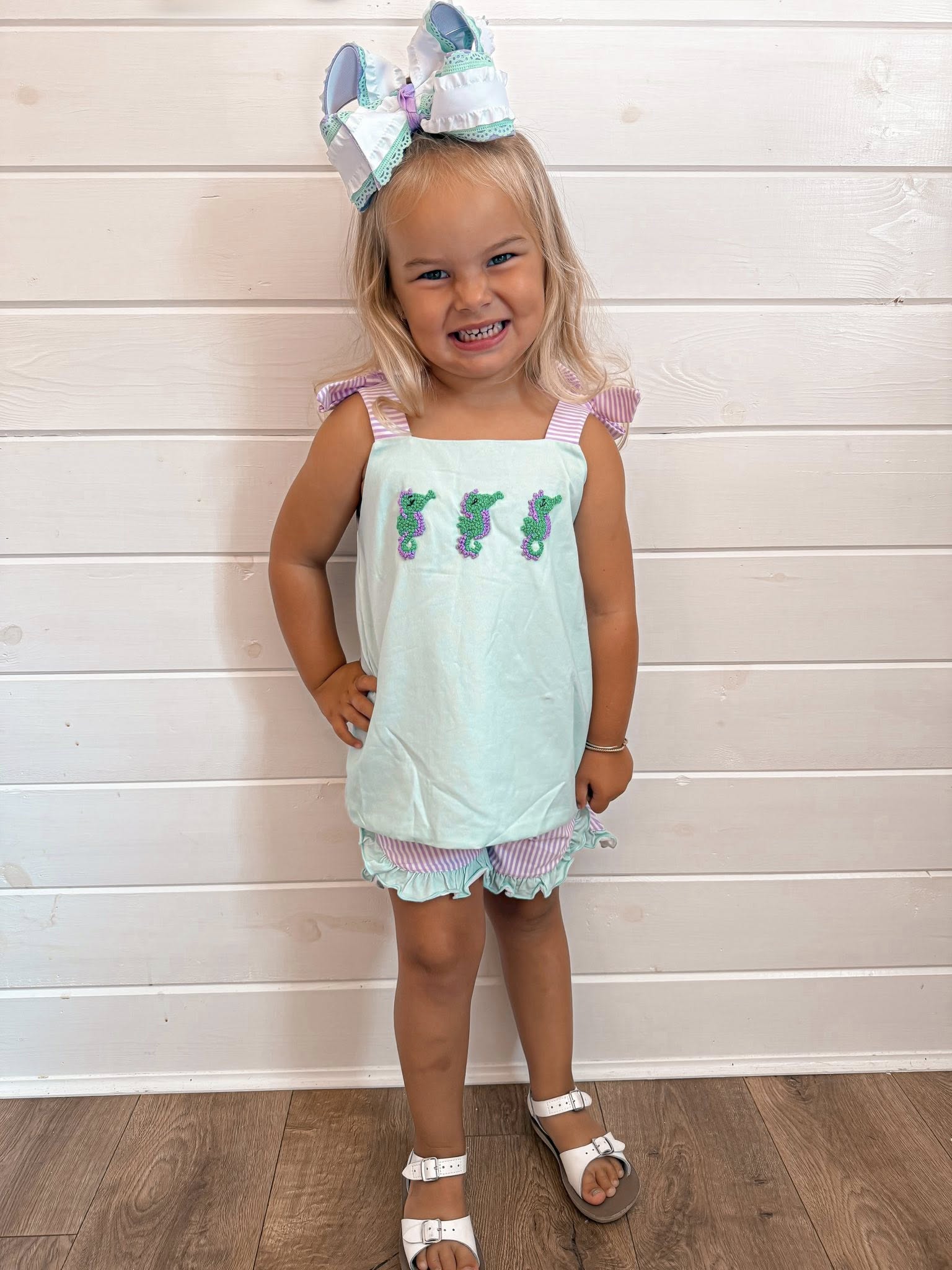 FRENCH KNOT SEAHORSES GIRL SHORT SET