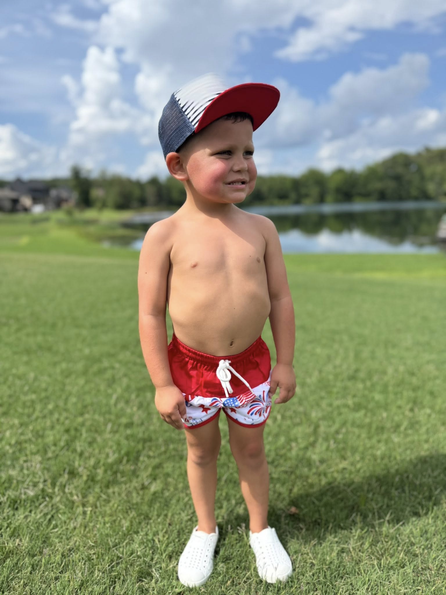 RED, WHITE, AND BLUE SWIM BOY TRUNKS