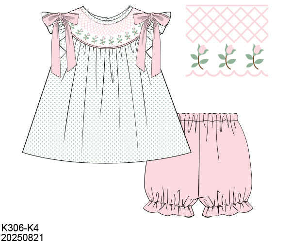 WS PO82: Girls Rose Stem Geosmocked Short Set